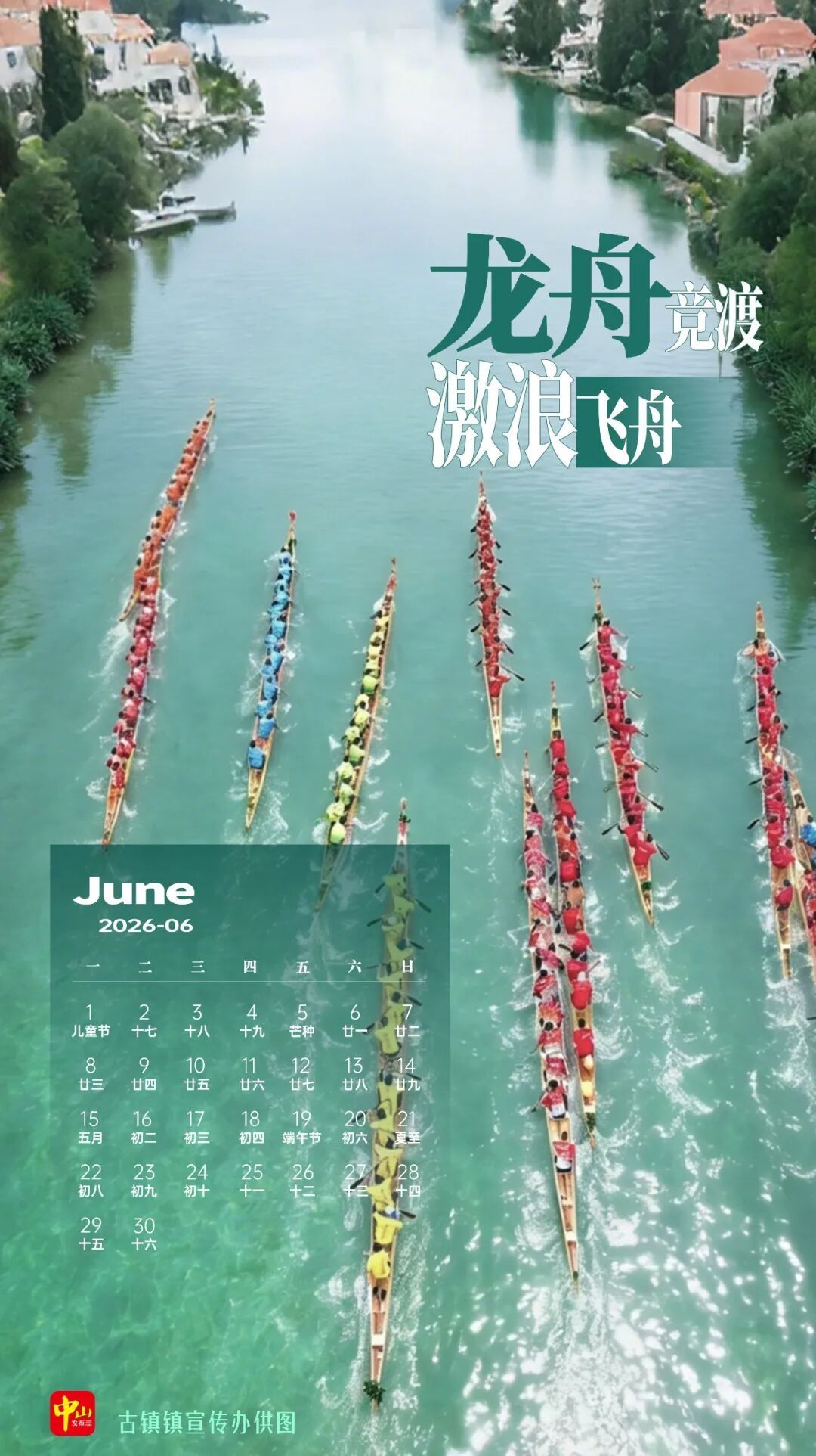 龙舟劈开碧波向前